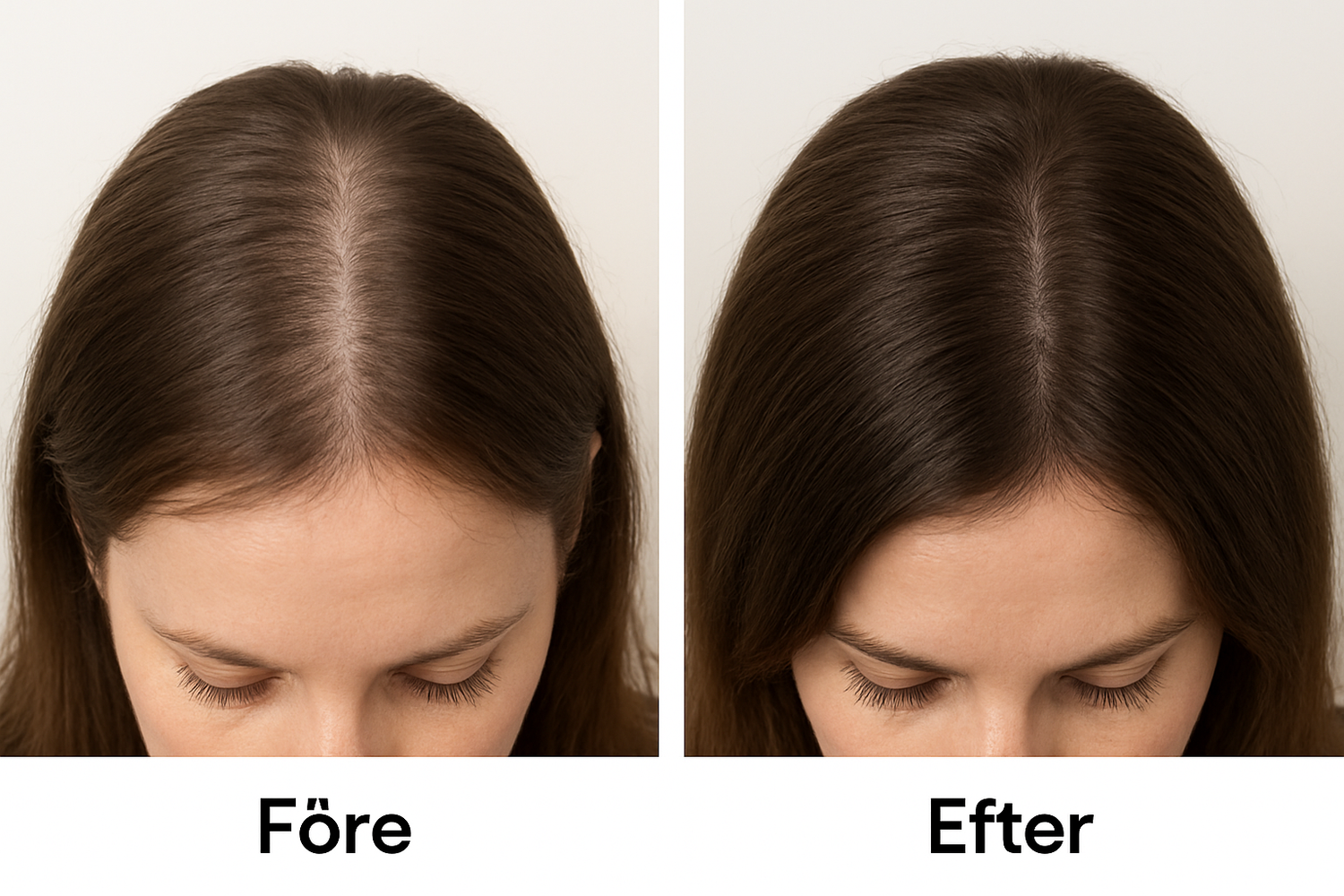 De flesta börjar se små babyhår redan efter 2–4 veckor. Med regelbunden användning blir resultatet tydligare månad för månad, och du kan förvänta dig både fylligare hår och en starkare hårbotten över tid. Ju mer konsekvent du är, desto bättre och snabbare växer håret tillbaka.